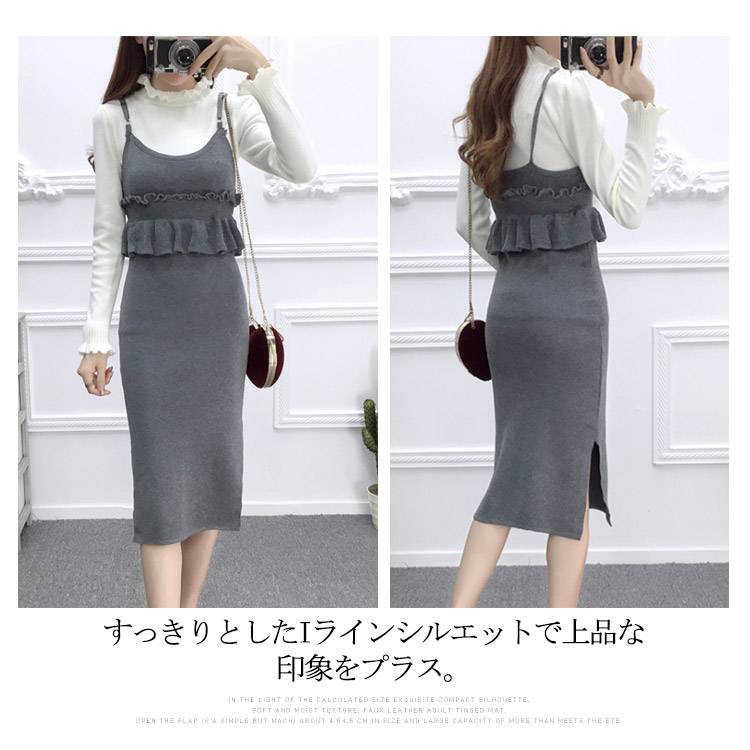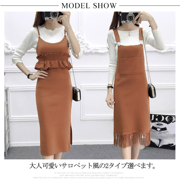 | 『上品清楚系』の大人女子を演出キャミニットワンピース♪大人可愛いサロペット風の2タイプ選べます。すっきりとしたIラインシルエットで上品な印象をプラス。無地&シンプルなデザインなので、飽きが来ず、長くご使用頂けます。今トレンドの長めの丈感が、大人女性の方にも取り入れやすいです。シンプルのブラウスやニットと合わせるだけでかわいいコーデ完成。 | |