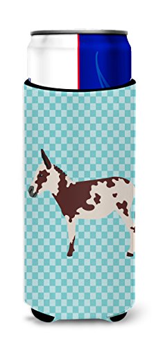 Caroline's Treasures BB8025MUK American Spotted Donkey Blue Check Decorative Hugger, Slim Can, Multicolor