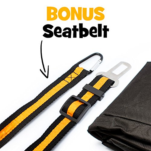 The pet car cover is comfortable for your furry friend and comes with a gift seatbelt tether, so you can tie your dog's leash easily into your seatbelt and keep your pet safely restrained. Buy your own NOW and keep your car seats looking as good as new! 0