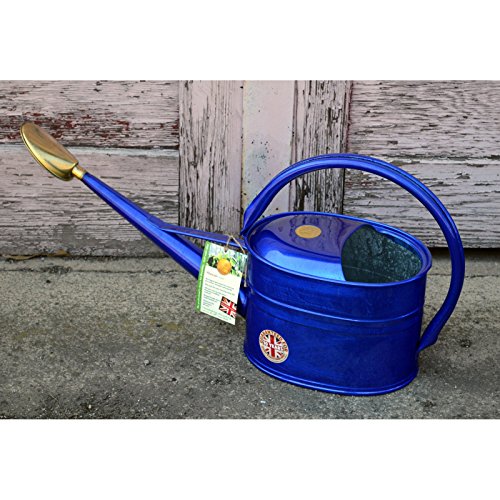 Haws Slimcan Metal Watering Can with Oval Rose, 1.3-Gallon/5-Liter, Sapphire