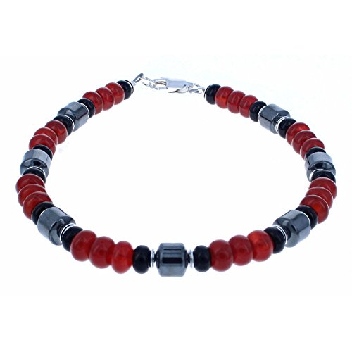 -. Title : Ladies Carnelian, Black Onyx, Hematite (Hemalyke) & Sterling Silver Beaded Gemstone Anklet