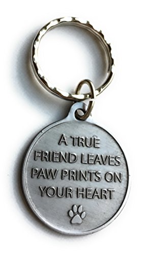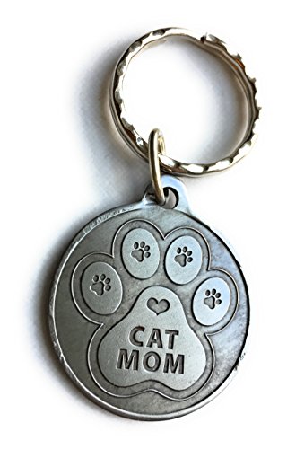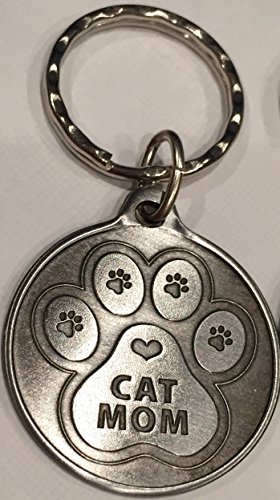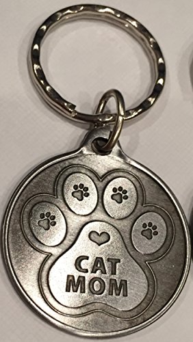 Cat Mom - A True Friend Leaves Paw Prints On Your Heart Keychain Pewter Color