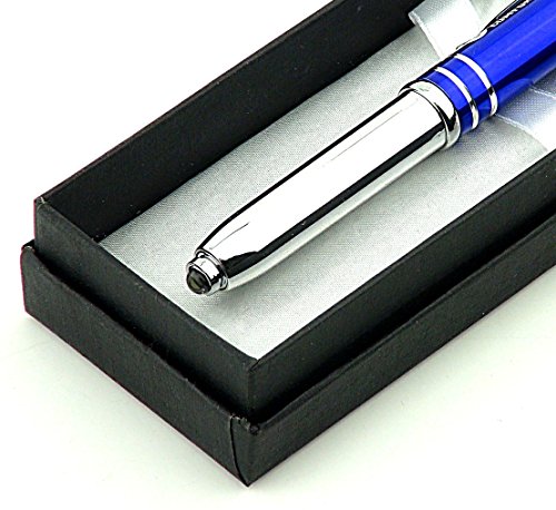 Anodized aluminum ball point w/ black ink; Pen size: 5.5" long; Box size: 2.25" x 7" x 1"