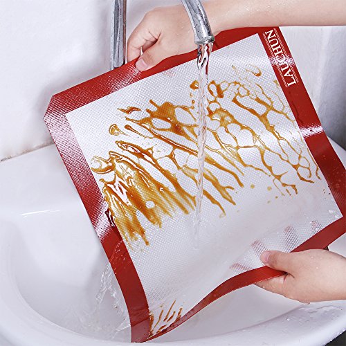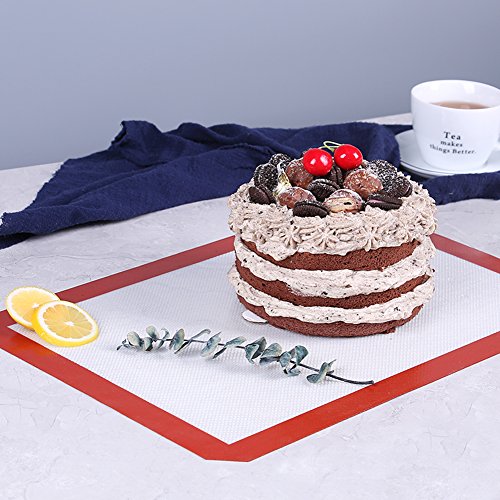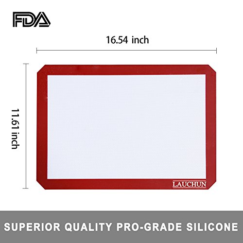 Silicone Baking Mat Set ( 2 ), for Cookie Sheet, Non-Stick, Professional Grade, with Red Border, 16.5 x 11 inches, 2-Pack, Long Life use, LAUCHUH