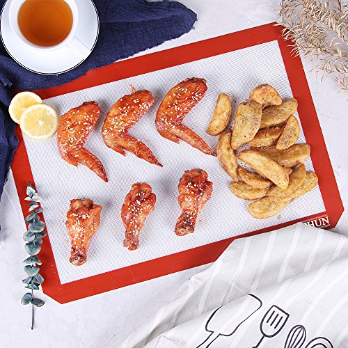 - ☺Perfect Dimensions: 11.6" x 16.5", (thickness is 0.75 mm) fit all standard baking sheet, meeting the needs of most families. Expediently prep and cook cookies, pastries, candy, meats, veggies and more.