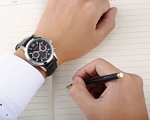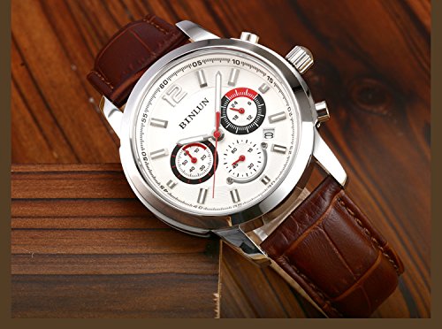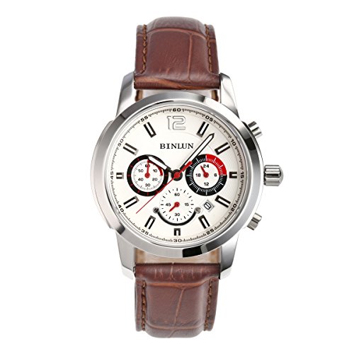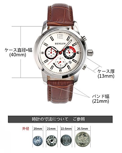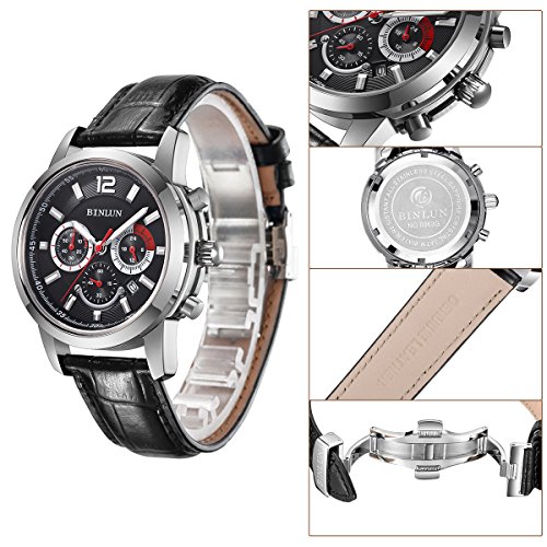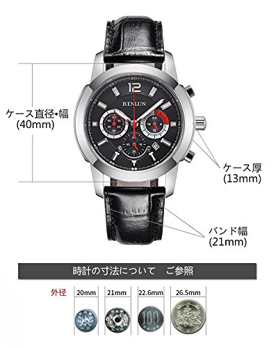 BINLUN 맨즈 손목시계 블랙 24시간표시 랩타임 D버클 가죽 밴드 일본제 쿼츠 워치 [병행수입품]