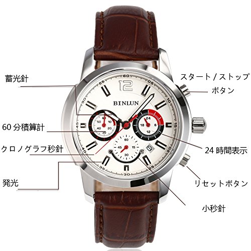 원본상품명: BINLUN メンズ腕時計 ブラック 24時間表示 ラップタイム