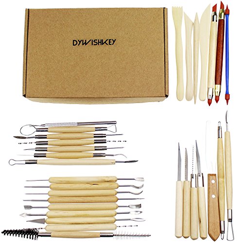 DYWISHKEY Clay Sculpting Tools Pottery Carving Tool Set- Includes Hole Cutter, Color Shaper, Ball Stylus & Wooden Sculpture Knife (30Pcs)