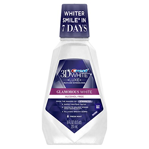 Rinse your way to a glamorous smile. Put the finishing touches on your morning smile routine with Crest 3D White Luxe Glamorous White Whitening Mouthwash. It’s designed with a triple-action formula that whitens teeth, prevents surface stains, and freshens breath. Its exclusive Whitelock Technology acts as a whitening protector that helps prevent new stains from forming. 3D White Luxe Glamorous White whitening mouthwash is enhanced by your full teeth brushing routine. That means, you’ll see a whiter smile in just 2 days if you are rinsing with Crest 3D White Luxe Glamorous White mouthwash and brushing with a 3D White Pro-Flex toothbrush and 3D White Luxe Glamorous White toothpaste together. Combined with the refreshing taste of Fresh Mint, 3D White Luxe Glamorous White mouthwash is the perfect way to stylize your smile.Feature