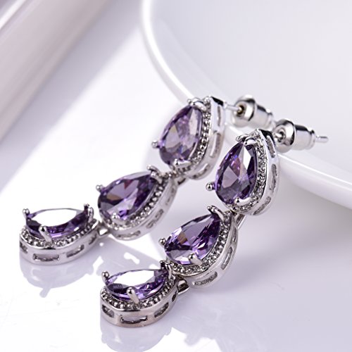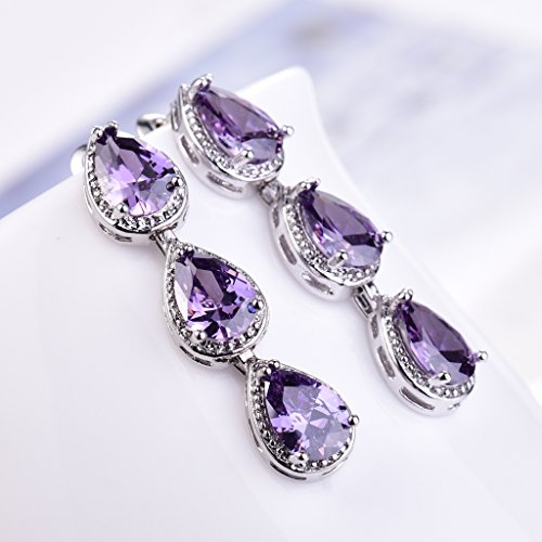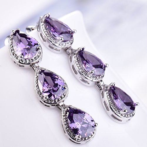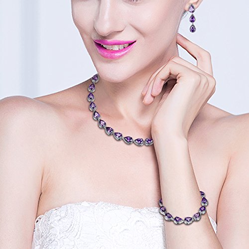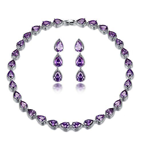 -. Title : GULICX Silver Plated Base Amethyst-Color Jewelry Set Necklace Earrings Women Wedding Party
