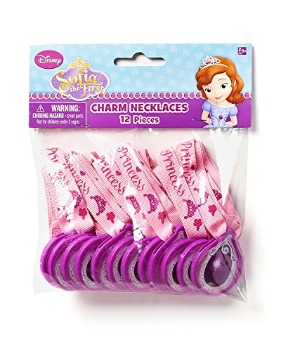Character themed necklace party favors simulate the jeweled necklace that Sofia wears in the animated Disney Junior series