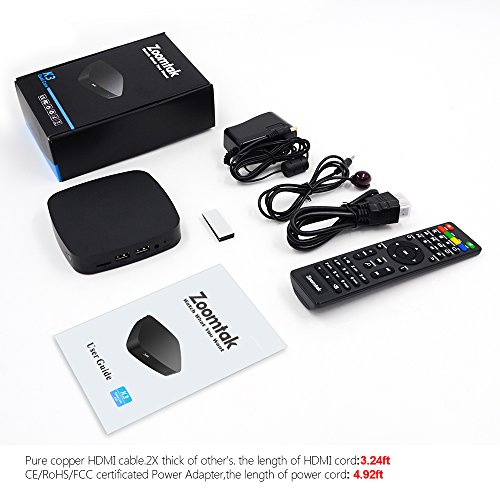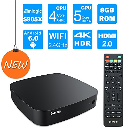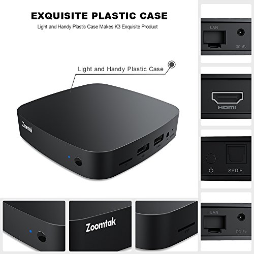 -. Feature : Smart Android Tv Box--Android 6.0 Marshmallow system, S905X quad-core 64bit Cortex-A53 Up to 2.0GHz, provides you with ultra-fast running speed and professional graphic processing ability. / K3 Android Tv Box-- Supports WIFI 2.4GHz, Ethernet: 10/100M, standard RJ-45. You should know, the network speed plays key role for the performance. / You can play thousands of android games in a large screen smoothly. Install your favorite apps and enjoy advanced technology. / Unique ZTMC APP---This is a unique app only work on Zoomtak android tv box to ensures that you have the latest and greatest movies and shows at anytime. / Excellent Customer Service --Offer the lifetime warranty and technical support.We believe that you deserve the best multimedia experience! Add to Cart now !!!
