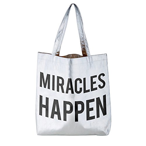 Miracles Happen Silver 16 x 14.5 Inch Polycotton Shoulder Tote Bag