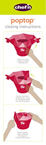 Making delicious popcorn at home is easy with the Chef'n PopTop Microwave Popcorn Popper (Cherry). Make healthier popcorn at home for friends and family with this microwave popcorn popper. Make and serve up to 10 cups of popcorn in minutes without added oil or butter. Simply fill the recessed cup in the bottom of the popper with up to 5 tablespoons of kernels, fold in the top, and place in the microwave. Easily remove the popper without burned or scorched hands from the microwave with the handy side tabs. Made of heat resistant silicone, this popper easily cleans in the top rack of the dishwasher.Feature
