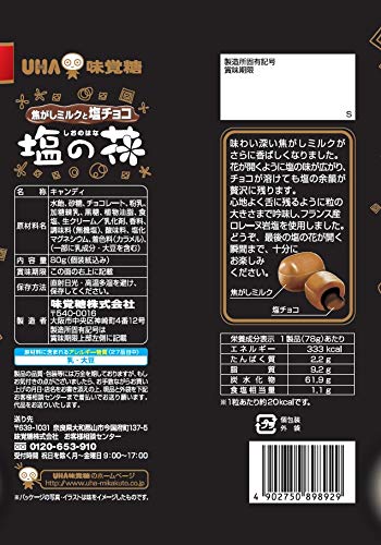 原材料:水飴、砂糖、チョコレート、粉乳、加糖練乳、黒糖、植物油脂、食塩、生クリーム/乳化剤、香料、調味料(無機塩)、酸味料、塩化マグネシウム、着色料(カラメル)、(一部に乳成分・大豆を含む)
