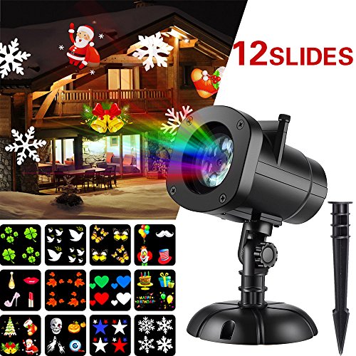 ONE FOR ALL 2017 UPGRADED PROJECTOR LIGHT: 12 Multi-color Pattern Slides of Scene Selections. Include 12 Exclusive Design Switchable Pattern: Christmas, New Year, Halloween, Thanksgiving Day, White Snowflake, Clown, Love, Birthday, Star, Ghost and skull heads. Ideal for interior and exterior walls, landscapes, dance floors and more. Celebration series projection light designs for every occasion! 12 pattern lens can fulfill all your needs!