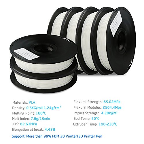 ALUNAR 3D Printer Pen Filament PLA for Desktop FDM 3D Printers 0.5 Kg 1.75 mm White