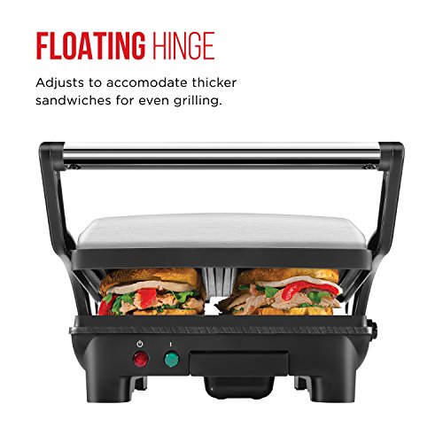 ADJUSTABLE FOR ANY OCCASION: Floating hinge adjusts to accommodate thin or thick paninis and sandwiches for even grilling. Easy and fast operation for a quick meal, summer party or a family event. This unit is perfect for making breakfast, lunch, dinner and more!.