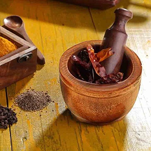 Christmas Gift, Wooden Bamboo Garlic Pounder Mortar & Pestle Garlic Press Spice Crusher, Brown Color Size 7 X 3.5 Inch
