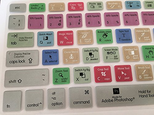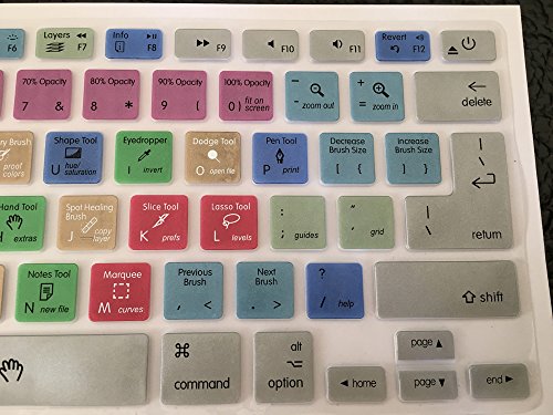 Adobe Photoshop Keyboard , PS Hot Keys Silicone Mac Keyboard Skin For Macbook Air 13 & Macbook Pro 13 15 17, Retina (US / European ISO Keyboard) (EU/US Both)