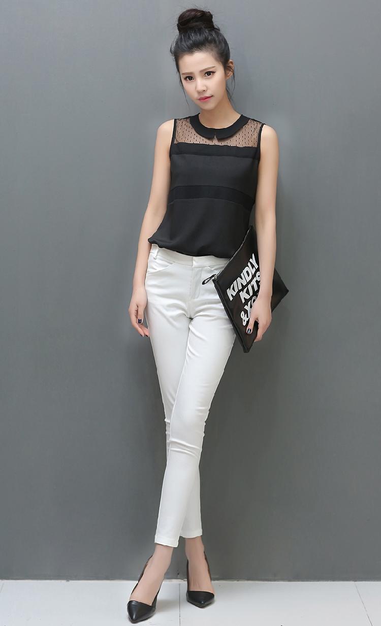 2015 New Hot Plus Size Women\'s Peter Pan Collar Blouse Chiffon Sleeveless Shirt Wear To Work Shirt M,L,XL 2 Colors