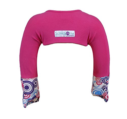 Binding : Apparel Product Description ScratchMeNot Flip Mitten Sleeves feature dual layer mittens have a smooth silk outer layer that prevents skin damage due to excessive scratching and rubbing. The sleeve fabric is made of a bamboo blended fabric that gives just enough stretch for the everyday tug pull usage. When the mittens are flipped closed, the inner layer of 100% cotton prevents fingers from scratching, while the outer layer of silk glides over the skin reducing skin damage. From eczema to chronic scratching, your child's skin has a chance to heal without the interference of little fingers scratching and damaging their skin. ScratchMeNots can be used as eczema mittens or to prevent hair pulling, thumb-sucking and more. They can also be used alongside any necessary medications or creams. "This product is pure genius and absolutely wonderful!! ....This has been a life saver and a miracle! My little one would claw and hurt her face because her itching was so bad. With your product, her face has healed. She can no longer hurt herself, but she can still comfort herself when she itches. Thank you...thank you...thank you..." - Vivian No matter when scratching begins, ScratchMeNot Flip Mitten Sleeves can help end it by flipping the mittens to the closed position. Children are able to use their hands for activities with the mittens closed. Open them to continue with hands-free time when the scratching has ended. 0