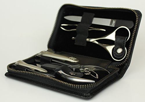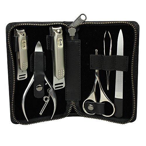 The 6-piece craftsman grooming kit (G-3103) grooming kits simply don't come better. The highest quality implements secured in a beautiful genuine leather case. Kit includes: Deluxe stainless steel toenail clipper with nail file (only available in craftsman kits) sei edge satin straight fingernail clipper (SS-108) nostril scissors, stainless steel nail nipper, nail file-seki edge extra grip slant tweezer (SS-503).Feature