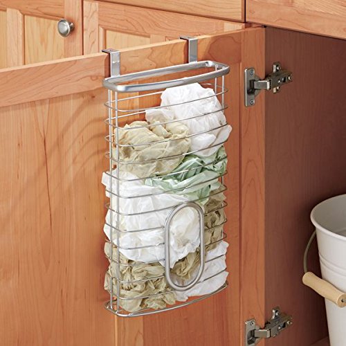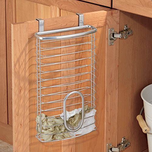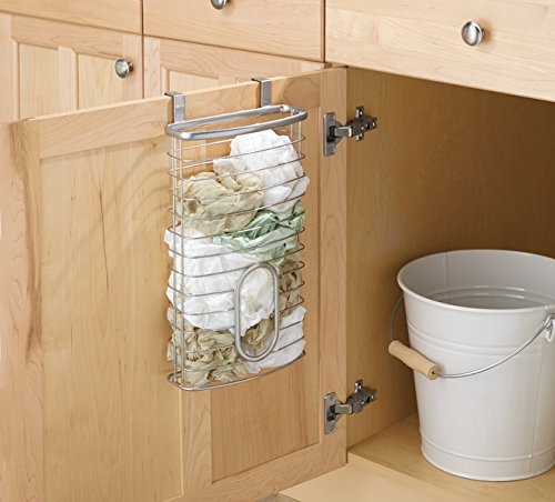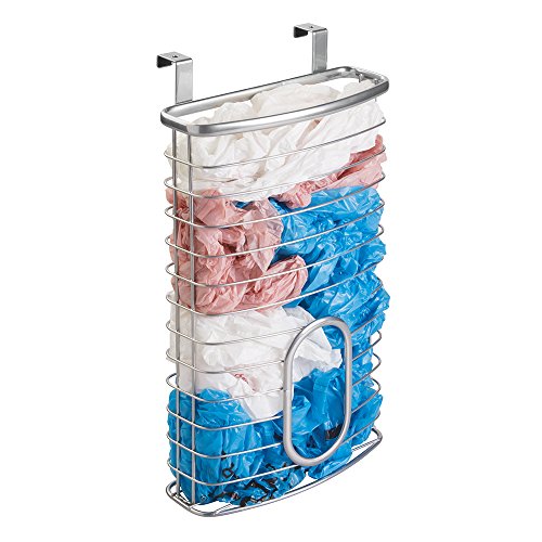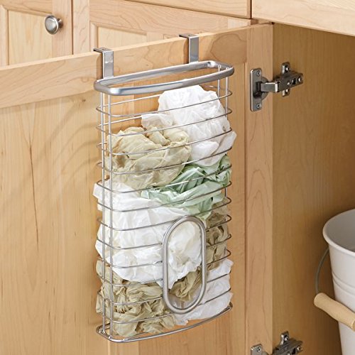 mDesign Over-the-Cabinet Plastic Bag Storage and Grocery Bag Holder, Kitchen Storage – Silver