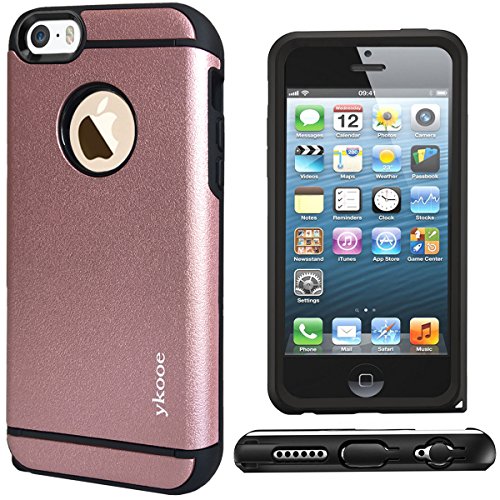 iPhone 5 Case,iPhone 5S SE Case,ykooe (Elegant Series) Classical Dual Layer Rugged Shockproof Hybrid Protective Case With Dust Plug Cover for Apple iPhone SE 5 5s (Rose Gold)