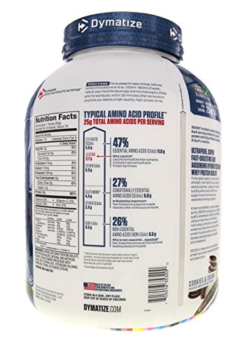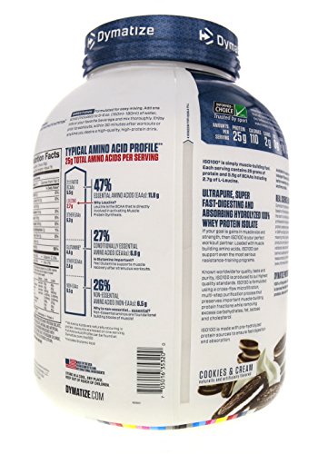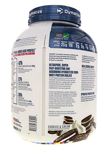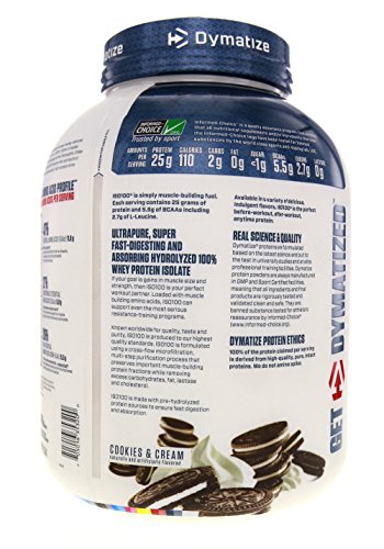 Studio : Dymatize Publisher : Dymatize Binding : Health and Beauty Product Description Take your performance to the next level with ISO100. You expect only the best from yourself and your nutrition. DYMATIZE ISO100 is one of the most advanced and effective proteins available and was developed to give you 100% of what you need to support muscle growth and achieve your ambitions. The Fastest-Acting Protein. ISO100 provides 25 grams of super-fast absorbing 100% whey protein isolate and has been hydrolyzed for even faster absorption and digestion. It delivers quick amino acid replenishment, perfect first thing in the morning to stop catabolism or after intense training to speed your recovery. Each serving of ISO100 has 5.5 grams of BCAAs including 2.7 grams of L-Leucine, the BCAA that is directly involved in activating Muscle Protein Synthesis to ensure your workouts are not going to waste. The Highest Level of Purity. ISO100 uses only whey proteins derived from cross-flow microfiltration processing (cold-filtered) to lactoferrin and immunoglobins, which can be lost in other forms of processing. We have carefully formulated ISO100 to deliver more of what you want, and less of what you don't want: free of gluten, fat and lactose, plus only one gram of sugar. With only a short list of ingredients, it is easy to see why ISO100 is one of the purest proteins available. In addition, ISO100 is produced in our own GMP manufacturing facility and is Informed-Choice Trusted by Sport certified providing assurance to the athletic community that ISO100 is free of banned substances. New Improved Taste. Dymatize has taken flavor to a whole new level! Our in-house flavor specialist worked long and hard to create an even more delicious taste. ISO100, the reward you deserve for all your hard work and dedication. So delightfully delicious, you will look forward to the next shake. Your Ambition. Our Nutrition. 0