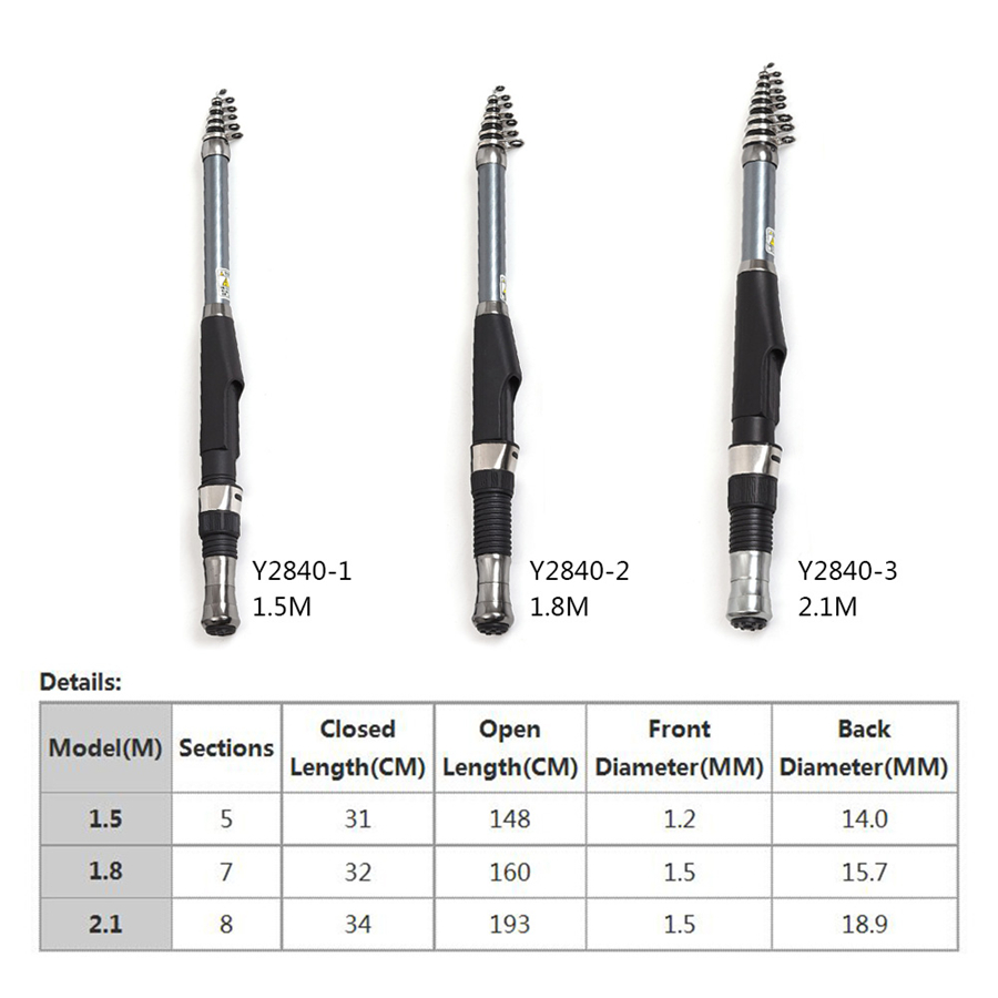 The telescopic fishing rod is portable, and closed length design is convenient to carry around.