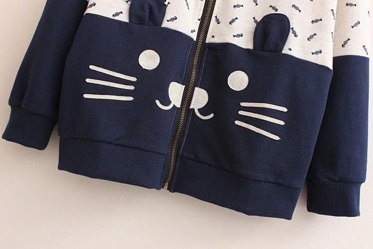 2016 New Spring Autumn Women Zip-up Pullover Cat Fish Print Mori girls Hoodies with hood Back with cat Tail Cute Teens Outwear Condition: Brand new
