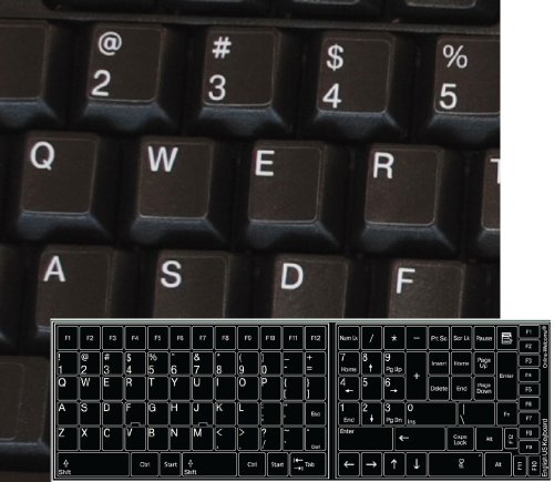 REPLACEMENT ENGLISH US KEYBOARD STICKER BLACK BACKGROUND