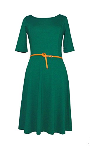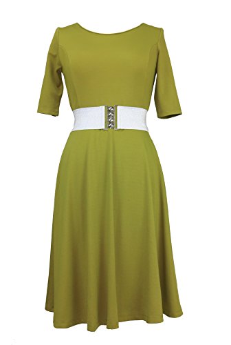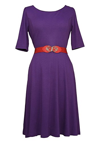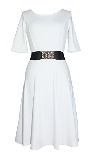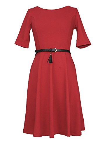 UNIQUE DESIGN-This is a very elegant looking dress.It hides a lot of imperfections and can be worn with or without a belt, either dressy or casual.The waist is higher than your belly button so it gives a fuller shape to your body.The sleeves are an inch shorter than your elbows.It is super easy to get into the dress due to the boat neck design.Classic knee length,Strech fluid knit drapes softly over your curves,gives your body a very slim appearance.