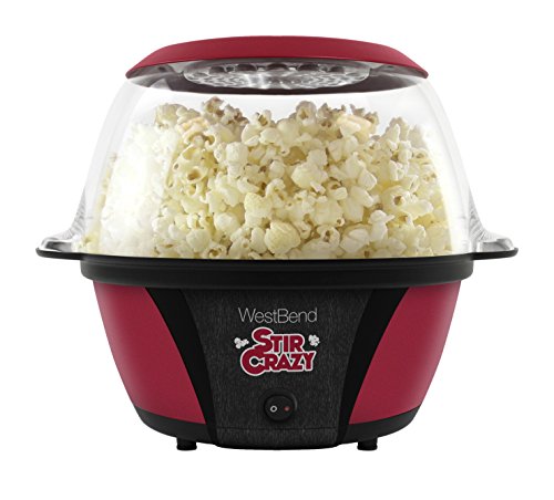 Americans consume 52 quarts of popcorn per person every year. The West Bend 6 quart stir crazy corn popper satisfies this appetite by making Deluxe popcorn an inexpensive, wholesome treat that is easy to pop and fun.
