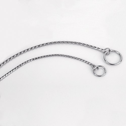Studio : PetEdge Dealer Services* Publisher : PetEdge Dealer Services* Binding : Misc. Product Description This extra fine chrome snake chain collars for dogs are an ideal dog show accessory. Lightweight collars will not create lines in the coat. Beautiful collars that add a touch of class at the dog show. Snake chain features a hexagonal link design that is coated in chrome. Collars are guaranteed for life. Chain measures 20-inch length by 1/6-inch thick. 0