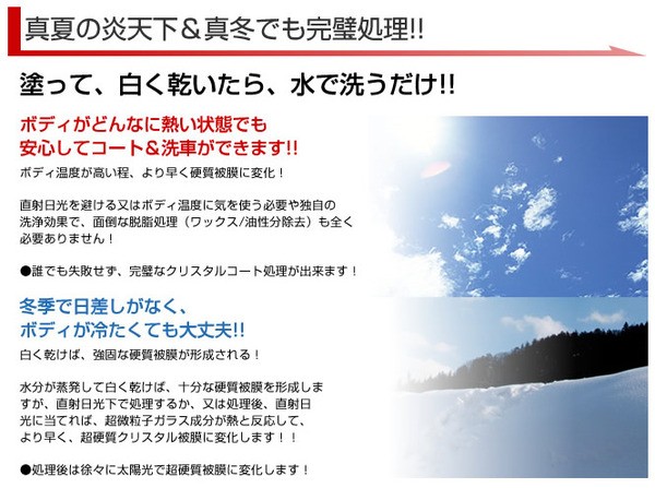 ・露天保管で1年以上、洗車&再処理をしなくても劣化しない強固な被膜を形成します。