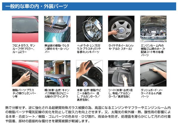 ・塗装・樹脂・ゴムパーツの色あせ・ひび割れ等の劣化を長期間にわたり防ぎます。