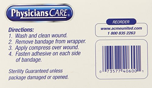 ReleaseDate : 2015-04-02 Studio : ACME United Corporation Publisher : ACME United Corporation Binding : Health and Beauty Product Description Packaged for individual use and to replenish first aid kits. Non-Stick Pad. Breathable backing repels water and dirt. Absorbent Pad wont stick to wound for gentle removal. Sterility Guaranteed unless package damaged or opened. 0