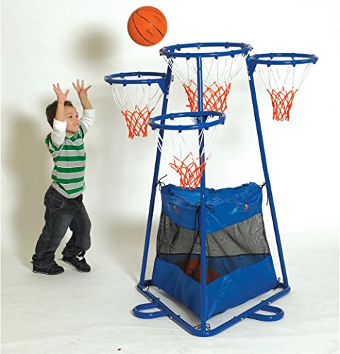Children's 4-Rings Basketball Stand with Storage Bag Your little one will love getting his game on with the Children's 4-Rings Basketball Stand with Storage bag. A great toy for boys and girls alike, you'll want to join in the fun as well. Strong and durable, this stand is made of metal and finished in a classic shade of blue. Easy to store, the three outer hoops turn in while the storage bag keeps everything safe and together. - Metal stand with 4 hoops