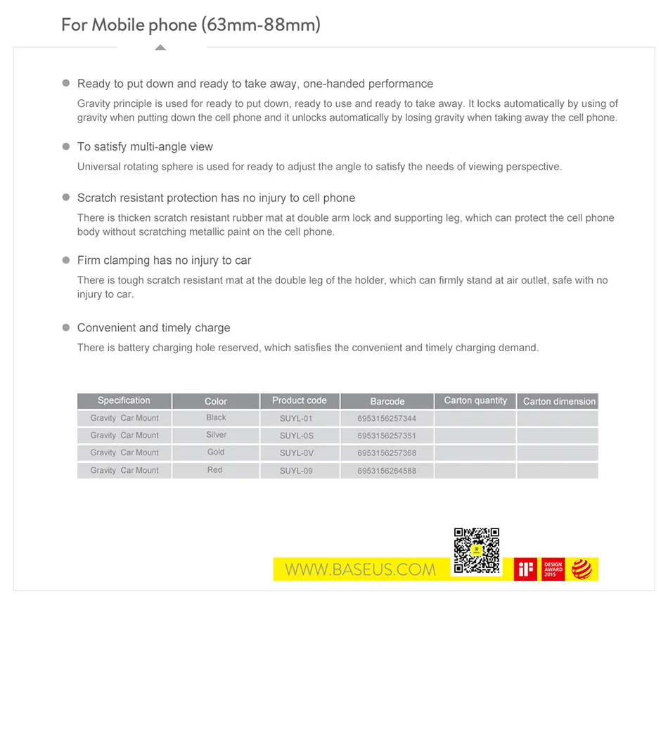 Feature 7:Gratity Car Mount Holder, For iPhone Holder, Car Mobile Holder
