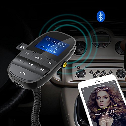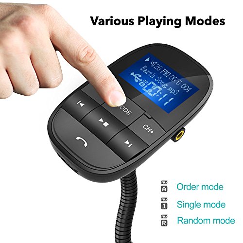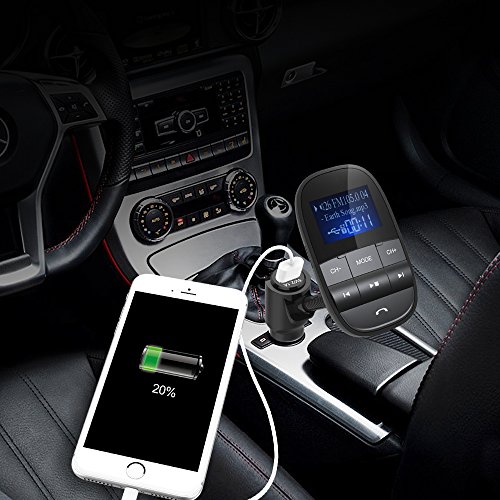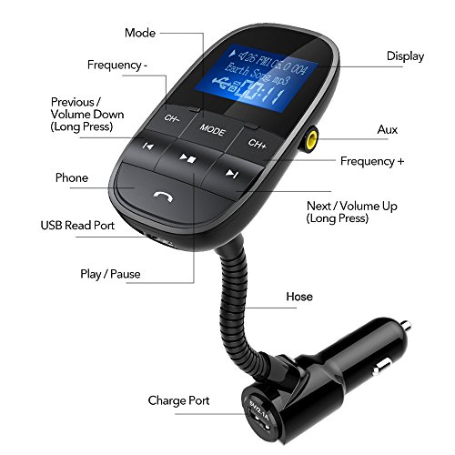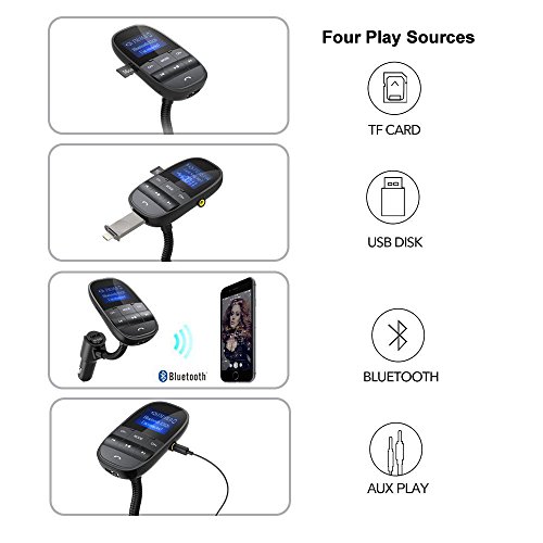 Tecboss Bluetooth FM Transmitter, Big Screen Wireless Hands-Free Car Kit Play USB Flash Drive TF Card W Aux In Out – Black