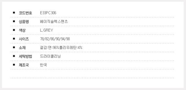 ★상품 설명★ 슬림라인 스트레칭(스판)소재의 그레이 면 슬랙스 바지.기존 슬랙스 원단보다 스판성을 더 가지고 있으며, 면원단 특유의 착용감까지 느낄 수 있는 제품.