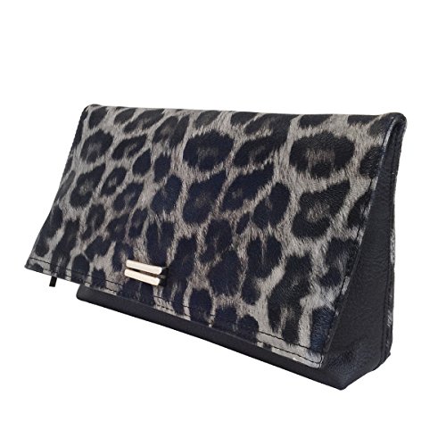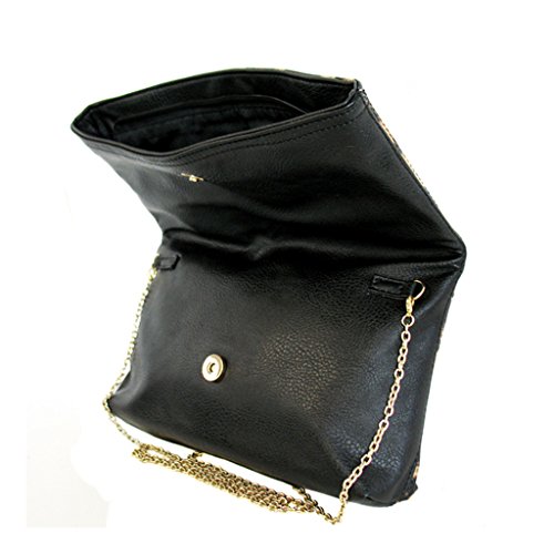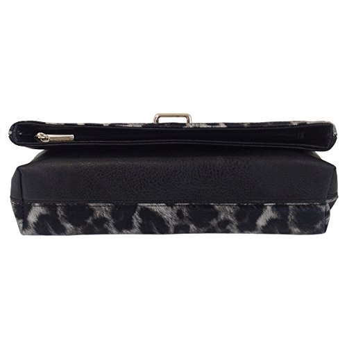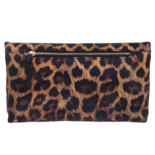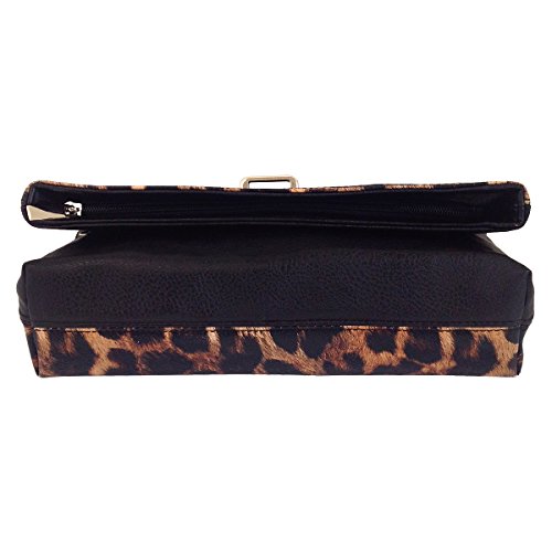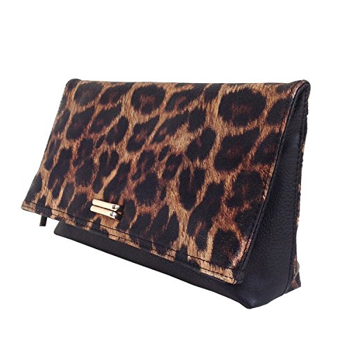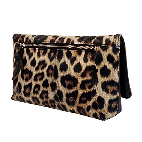 -. Brand : JNB -. Department : womens -. Feature : Comes with 21" drop crossbody chain / Black twill fabric lining / Inside features zippered pocket / Magnetic snap closure and Zipper Top / Extra zippered pocket at the back -. ProductGroup : Shoes -. ProductTypeName : HANDBAG -. Title : Leopard P.R.Int Foldover Clutch