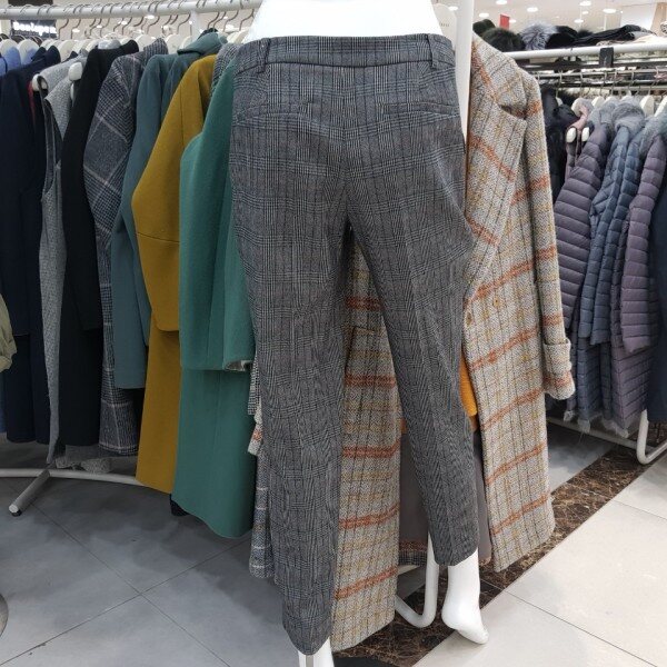발목선까지 떨어지는 슬림정장팬츠로 신축성이 있어 편하고 라인도 너무~예쁩니다.봄.가을 같이 입으실수있는 두께감입니다.