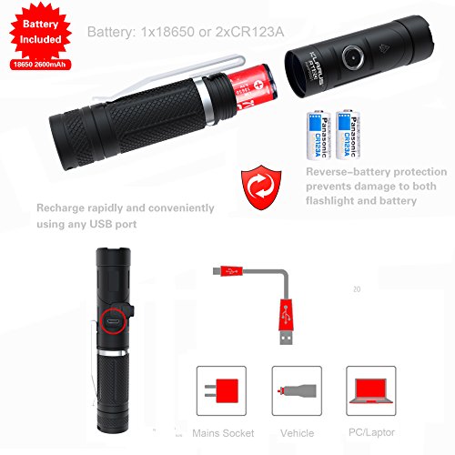 -. Title : Flashlight, AR10 Improved Design KLARUS RT20 USB Rechargeable Flashlight, 6 Models, 18650 Battery Included, Magnetic Adjustable-head Portable Compact Tactical LED Flashlight, IPX-8 Waterproof
