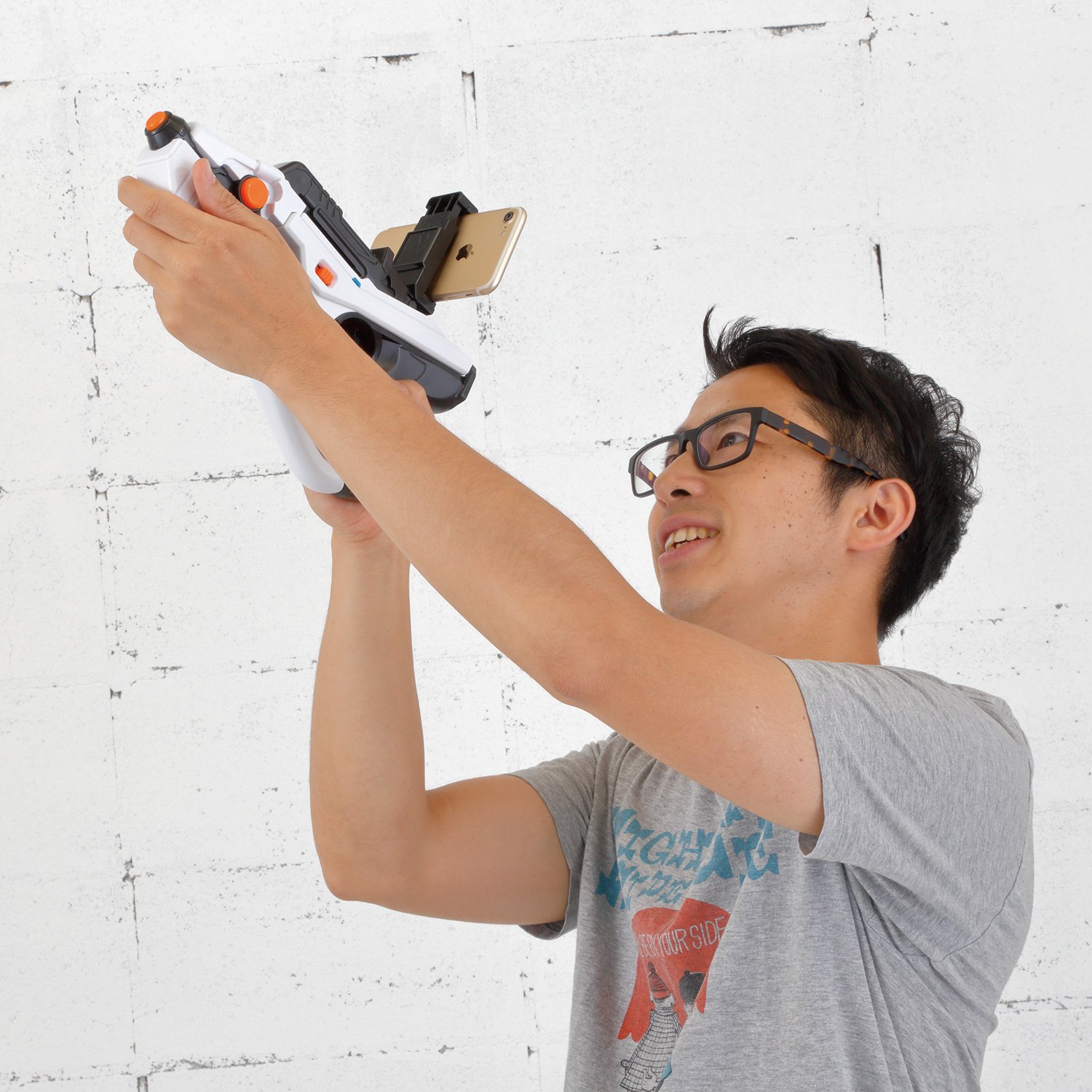 Gun type controller is fully linked with smartphone by Bluetooth.