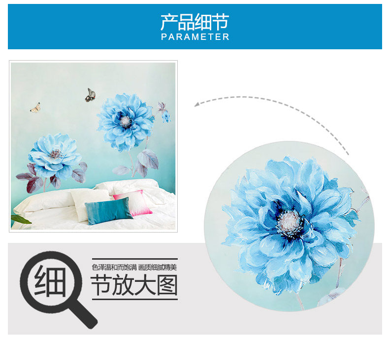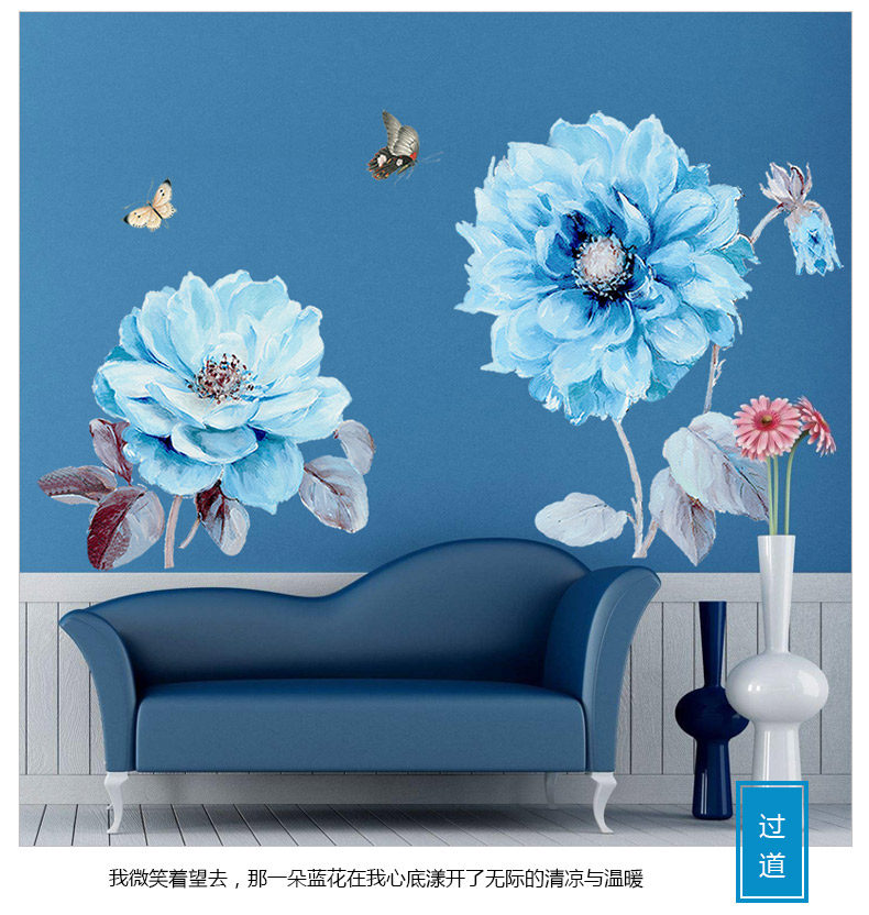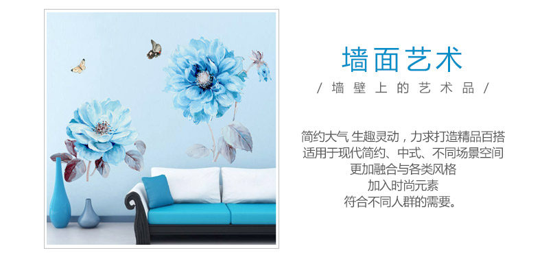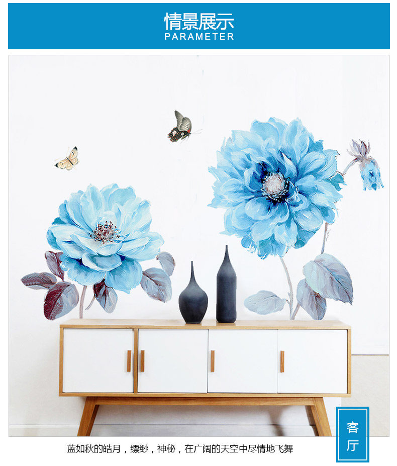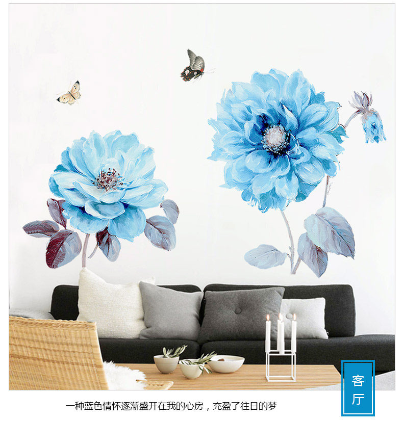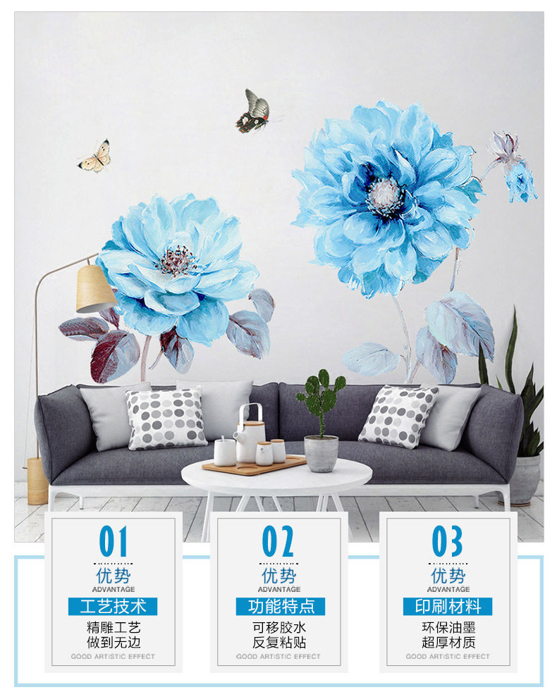 创意花卉电视背景墙贴纸卧室客厅床头墙面装饰贴画可移除壁纸自粘