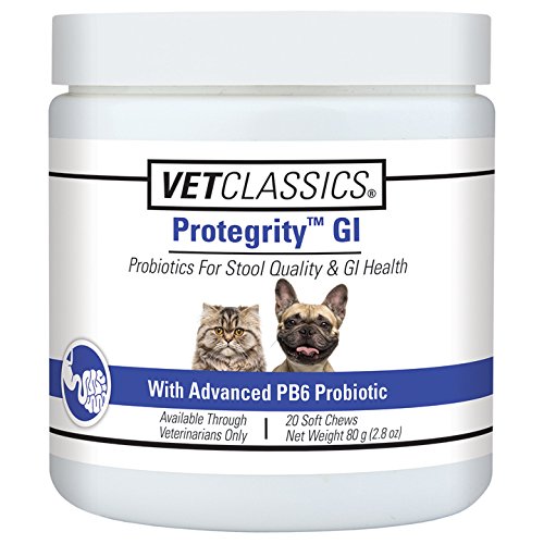RESOURCES Protegrity GI is formulated for dogs experiencing GI stress due to antibiotics, stress, change in diet or other reasons. This clinical-strength health supplement improves stool quality and promotes a balanced GI system for general health. Resources Protegriy GI contains a patented Bacillus subtilis PB6 which brings unbeaten proven safe and effective health benefits to your dog. This mixture of probiotics, prebiotics and antioxidants are in a highly palatable chew your dog will love, and easy for you to give.Feature