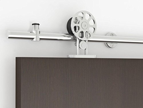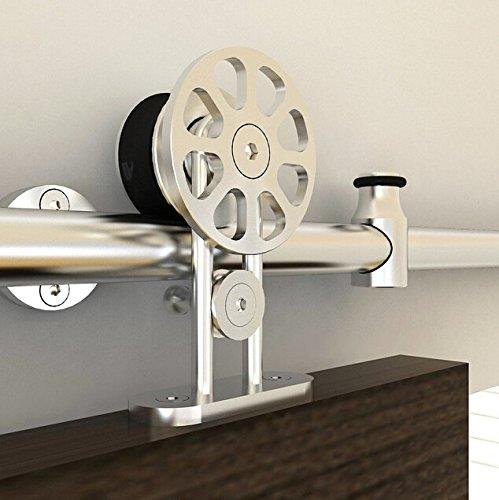 6.6FT Top Mount Spoke Wheel Barn Door Track Sliding Barn Door Hardware,Stainless Steel,Brushed